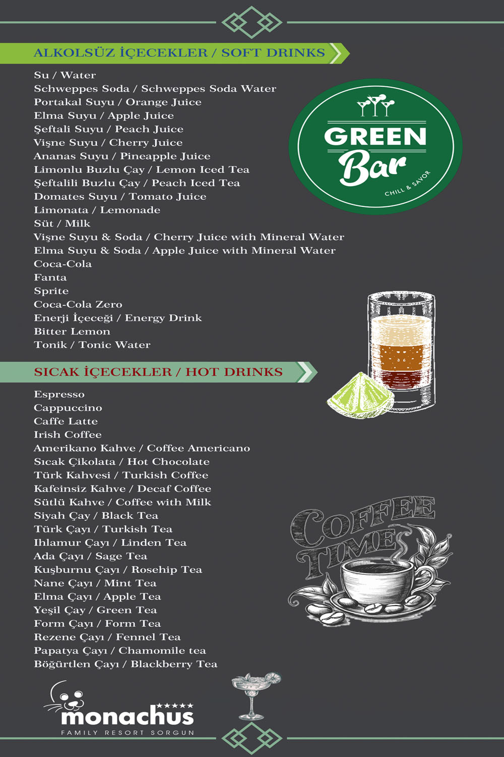We invite you to take a pleasant break at the Green Lobby Bar at any time of the day. With carefully prepared drinks and friendly service, we add flavor to your holiday.